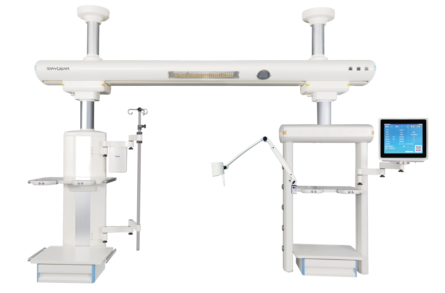 ICU 干濕分離旋臂吊橋 適用于醫院ICU病房,是現代重癥監護病房必備的醫療搶救輔助設備,主要由橋架,干段和濕段組成。其特點在于合理的干濕分離結構,濕段配置升降靈活的輸液架和輸液泵架。干濕段配置有可升降調節的醫療監護儀器平臺,在干濕段上分別將氧氣,空氣,吸引,強弱電,網絡輸入終端配置在醫護人員抬手可及的塔體上。濕段采用懸臂結構,提高了治療空間,移動旋轉部分采用氣控制動防飄移,桁架中央配置一款環保,節能的LED照明治療。為臨床治療提供了照明解決方案,另外還可根據您的要求選配通信傳呼,監控,可視電話